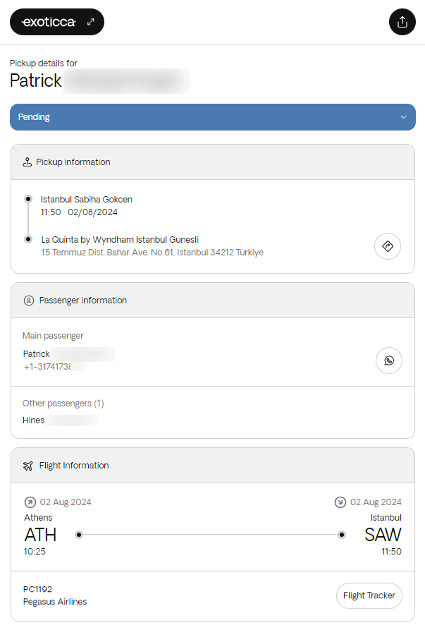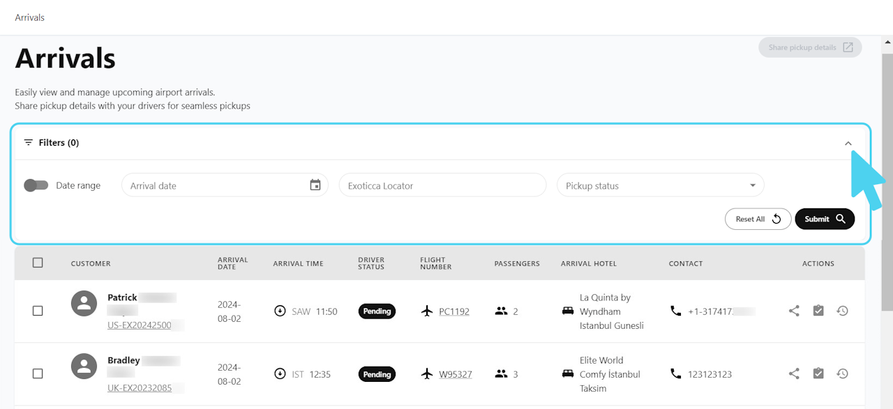 Additionally, you can filter by Pickup status and Exoticca locator.