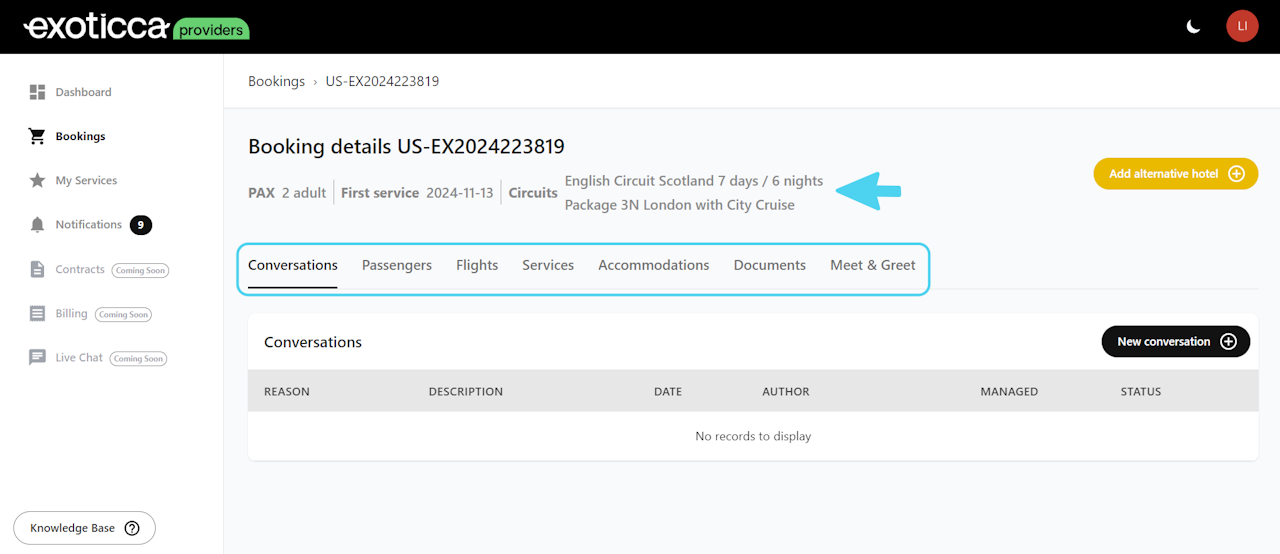 Comments left by you or by Exoticca in the booking now function as a conversation. This means that either Exoticca or the provider initiates a conversation by leaving a comment, and the other party can respond to that comment. This way, the conversation is recorded, along with any changes in the status of the conversation.