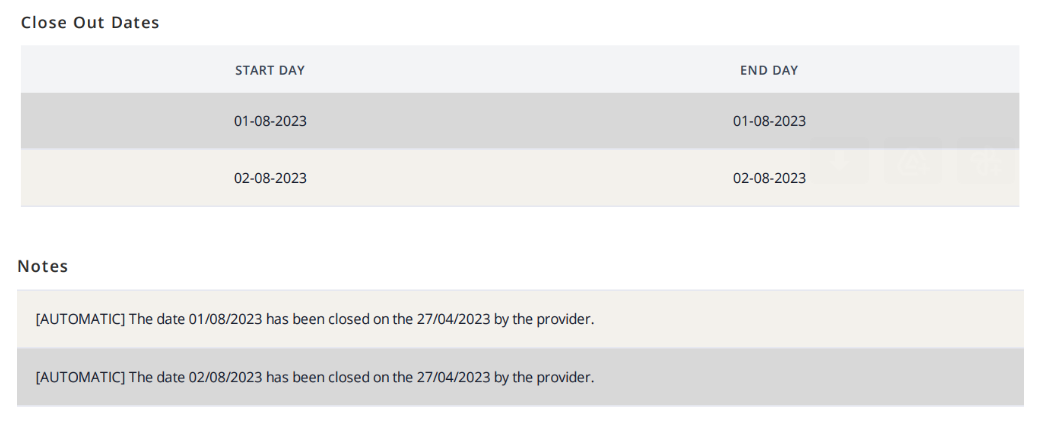 IMPORTANT TO CONSIDER: When you need to close sales for specific nights within a service, it's important to prevent customers from booking stays that include those blocked dates. To do this effectively, you must also consider the days leading up to the blocked period, as bookings made on these days might include the closed nights.
