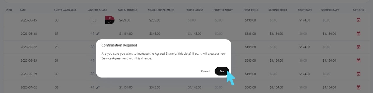 This feature allows you to increase the Agreed Share directly from the Platform.