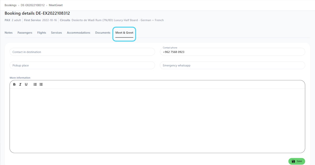 We can introduce the Meet & Greet information in our system to be generated by default in ALL your bookings.