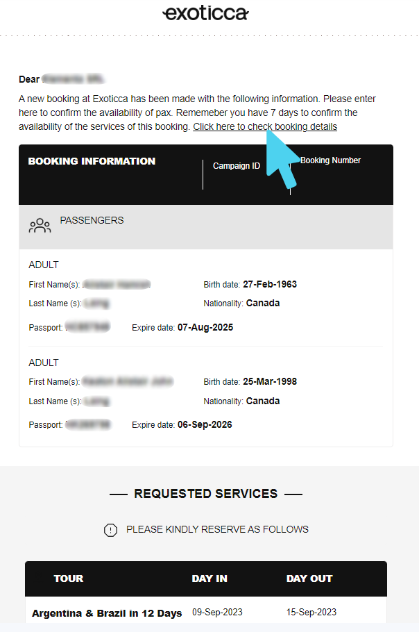 Every time there is a new booking, you will receive an email with a direct link to the platform, and all the information of the booking.